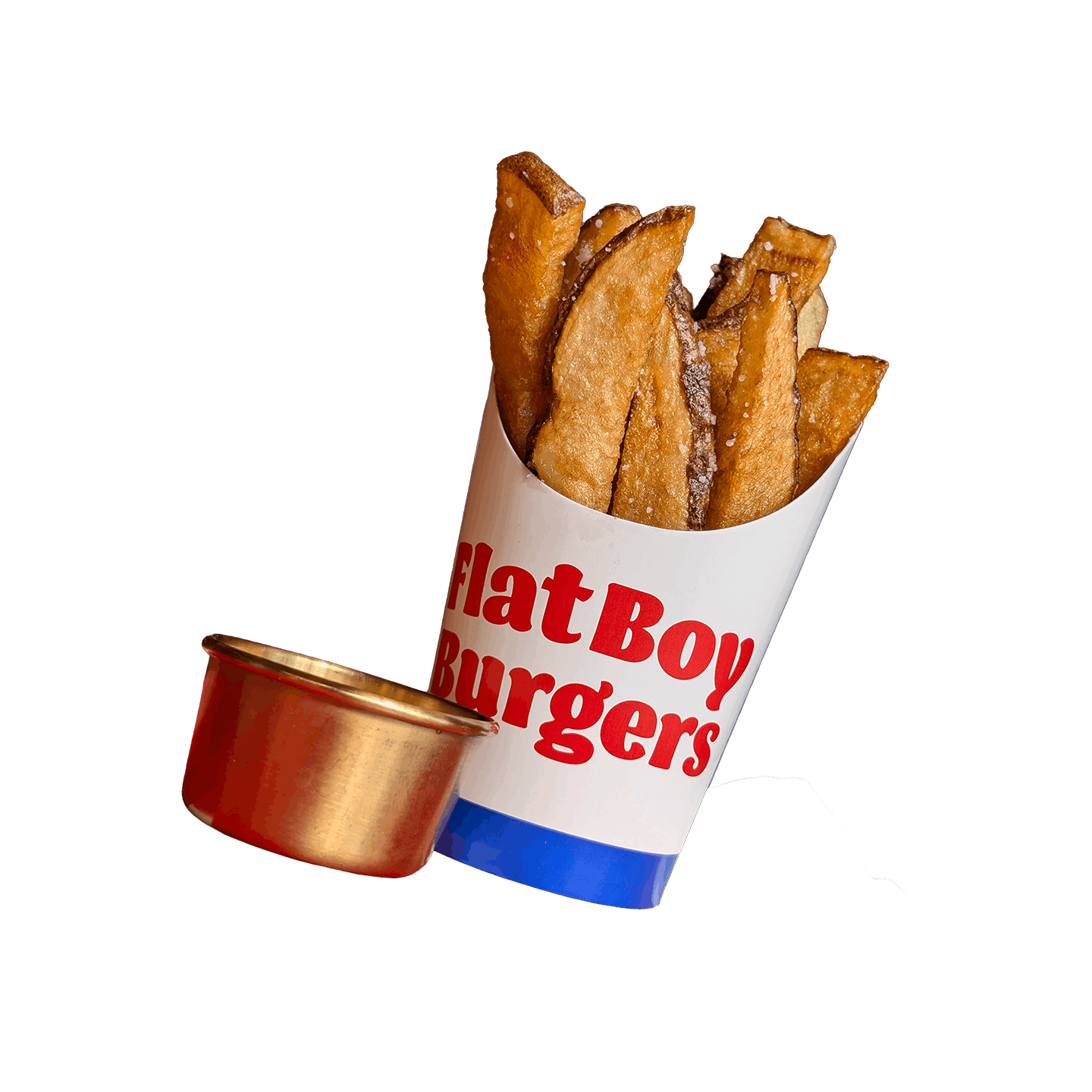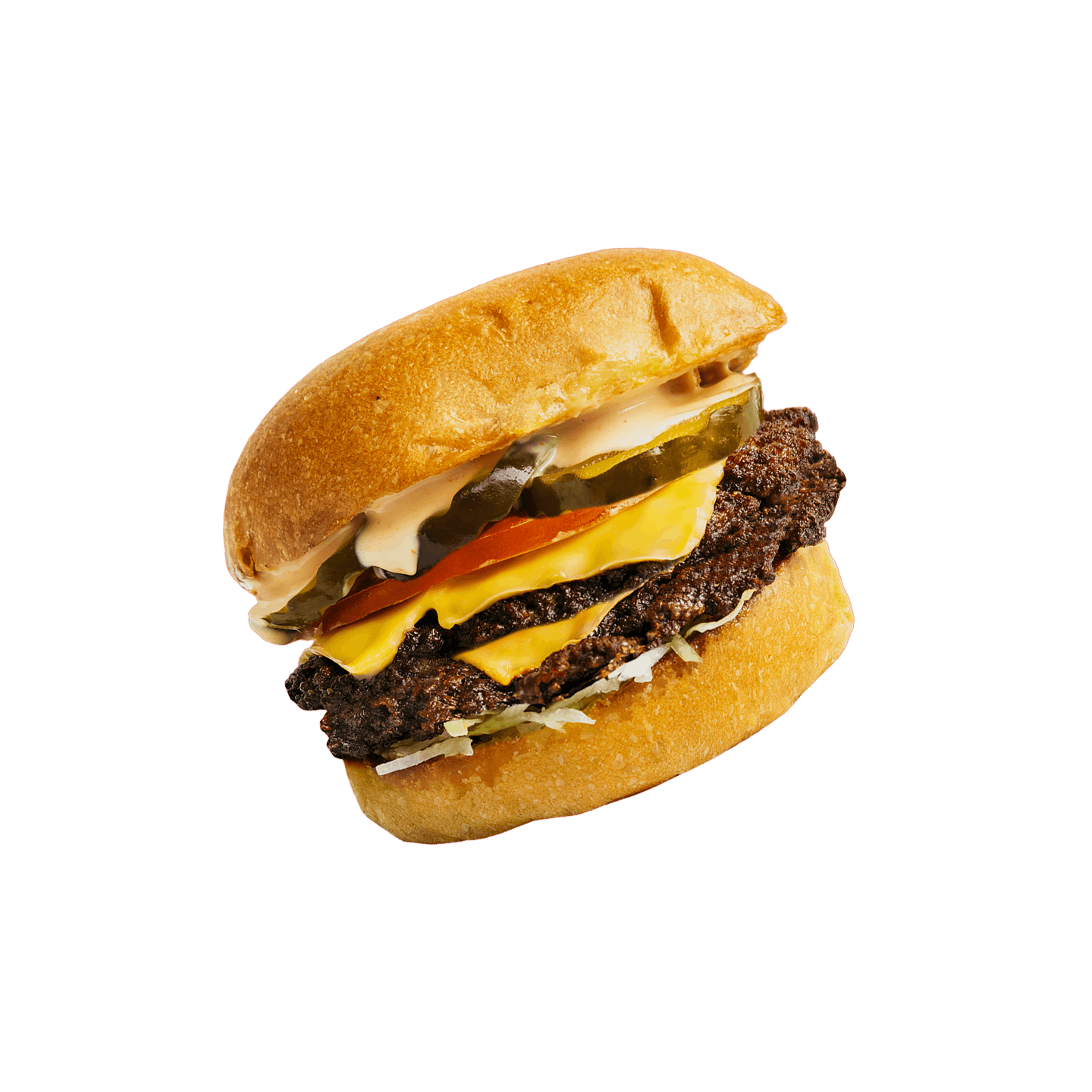 Certified Angus Beef Smash Patties, American Cheese, Lettuce, Onion, Tomato, Bread N’ Butter Pickles, and Our Signature Flat Sauce On A Freshly Toasted Bun